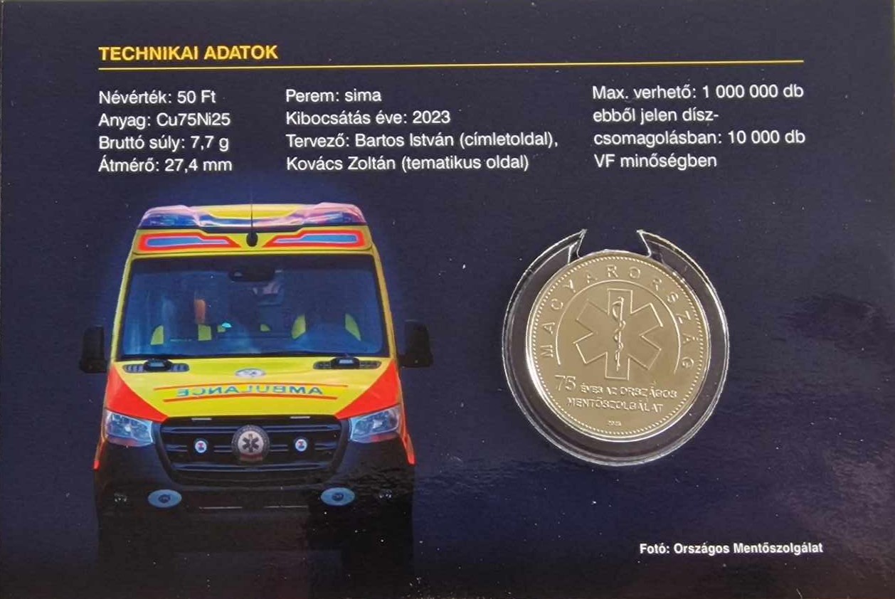 2023-AS SORSZÁM NÉLKÜLI BLISZTER (75 ÉVES AZ ORSZÁGOS MENTŐSZOLGÁLAT)