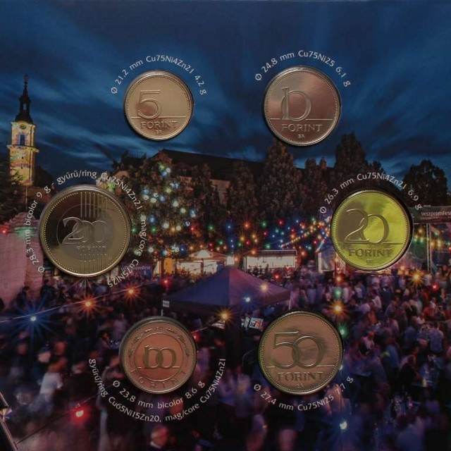 Érmék: 5 forint, 10 forint, 20 forint, 50 forint, 100 forint, 200 forint + réznikkel emékérem